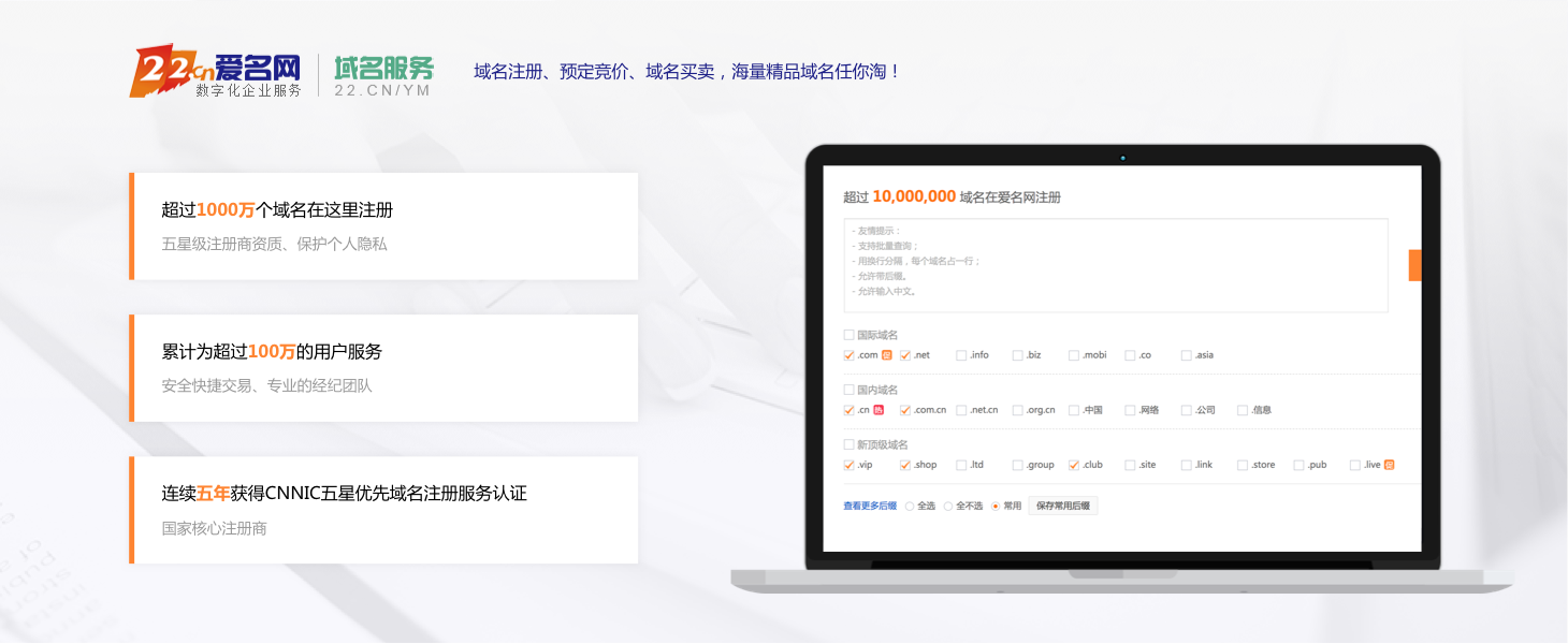 超过1000万域名在我们这边注册